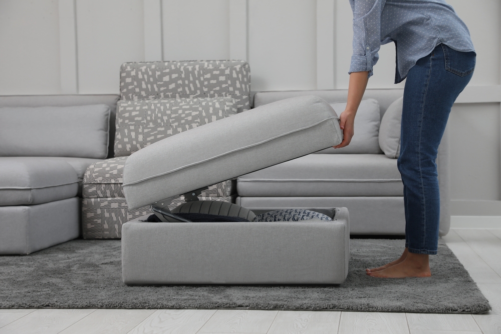 You should also add discreet storage where you can. For example, a coffee table with a lift-up top can double as storage space for remotes, magazines or snacks. Ottomans with hidden storage are a great place to stash blankets, books or other small items.